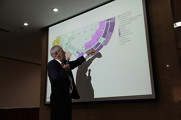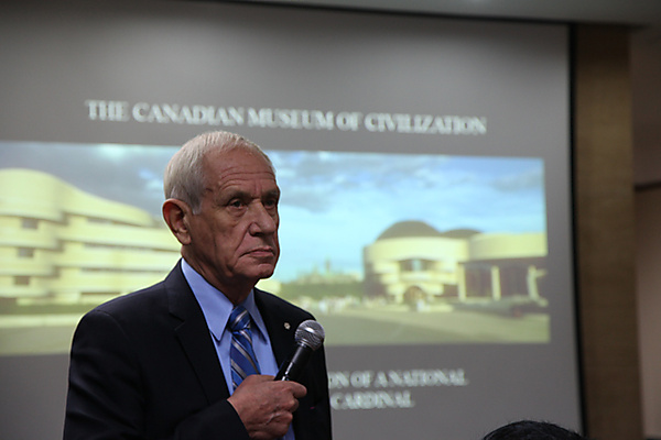 为使筹建中的中国民族博物馆在建筑设计、空间安排等一系列硬件设施以及研究、收藏、保管、数字化等一系列业务软件的规划上拥有国际视野与世界经验,2013年11月,中国民族博物馆特邀世界著名博物馆设计师道格拉斯·卡迪尔博士(Douglas Cardinal)与加拿大著名人类学家、加拿大文明博物馆印第安文化展示设计者玛丽博士(Marie Francoise Guedon)来到中国,围绕博物馆建筑设计及民族学博物馆展陈策略两大主题,进行专题讲座与交流讨论。