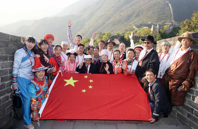 ▲2017年全国少数民族参观团的各族代表参观慕田峪长城。(民族画报记者 娘吉加 摄)