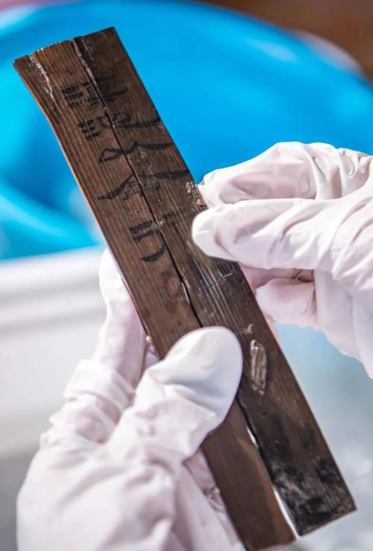 ▲考古工作者在清理云南河泊所遗址出土的简牍(2022年9月21日摄)。(新华社记者 江文耀 摄)