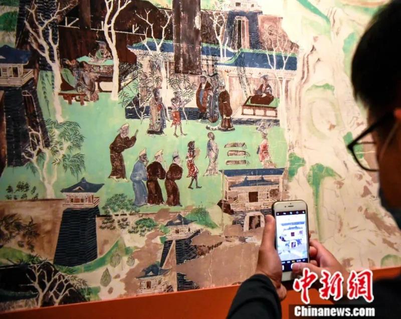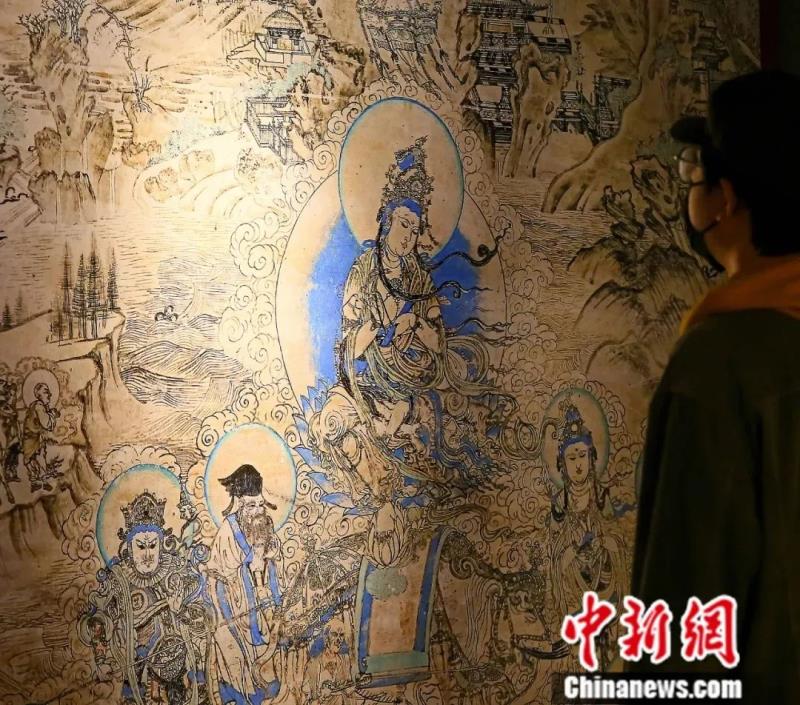 ▲敦煌壁画(复制品)展览。(中新社记者 高展 摄)