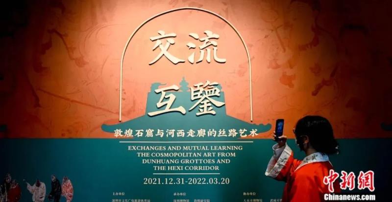 ▲2022年1月5日,市民在深圳博物馆参观“敦煌石窟与河西走廊的丝路艺术”展。(中新社发 鲍赣生 摄)