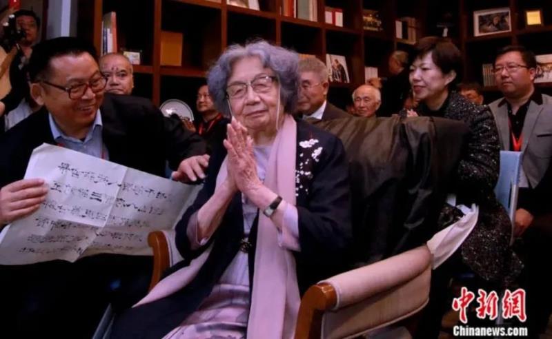 ▲2018年4月,第八届“海棠雅集”诗会活动在南开大学迦陵学舍举办,来自海内外诗词界、艺术界、文化界的名家学者共赴迦陵学舍。叶嘉莹出席活动,与众人赏花吟诗。(中新社记者 张道正 摄)