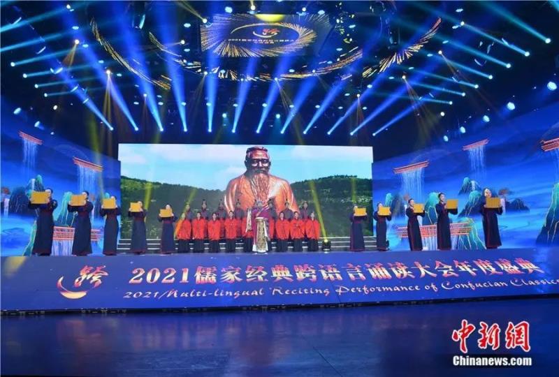 ▲“2021儒家经典跨语言诵读大会年度盛典”在山东济南举行。来自47个国家的中华文化爱好者同诵儒家经典。(中新社记者 吕妍 摄)