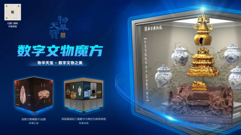南京博物院“物华天宝--数字文物之美”展项,以“线上+线下”相结合的新媒体数字展示传播为路径,将文物高精度数字化保护采集与三维影像互动呈现相结合,基于博物馆知识体系生产,以丰富的数字交互体验和融媒体矩阵传播,汇集二十余件南博精品文物的三维数字作品、绘本动画、虚拟线上特展、建筑投影秀等,突破时空限制,为公众打造鲜活、丰富、多元的深度数字沉浸式体验,以高质量文物数字化重塑博物馆新质生产力。以馆藏精品文物数字活化利用构建起一座超级链接的博物馆,不断拓宽“让文物活起来”的路径,链接“博物馆+公众+社区+教育”,链接“博物馆知识+展览+展会+文创+新媒体传播”,丰富展览、教育、研学、文创等高品质、多样化产品与服务供给,一体推动、共同构建起一座新时代“线上+线下”多元融合高质量的南京博物院。