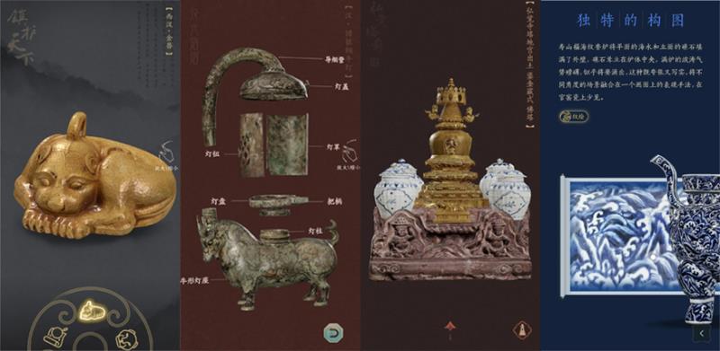 在文物知识阐释上,深度挖掘南京博物院文物工艺和历史文化元素,聚焦可移动文物和不可移动文物的个性化解构表达,“一物一策,一展一策”,以数字活化阐释文物之美;在形式上,综合应用多种虚拟现实技术、裸眼3D技术、三维重构技术,以沉浸式多形态数字展览展示方式丰富观展体验。以南京博物院第一件文物“老大殿”的三维数字化采集与利用项目助力南京博物院古建修缮工程,同时后期数字化成果综合运用于线上线下各类展示空间中。在518国际博物馆日的系列品牌活动“南博奇妙夜”中,依托数字文物打造数字沉浸式建筑巨幕投影秀,用精彩纷呈的展示展演和文化活动,为公众献上一场传统文化与现代数字艺术相融合的文化盛宴,通过文物数字活化利用精准化保护传承中华优秀文化遗产。