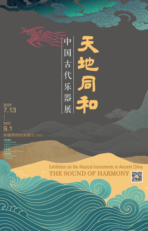 时值新疆维吾尔自治区成立70周年,“天地同和——中国古代乐器展”于2025年7月13日在新疆维吾尔自治区博物馆“国博厅”开展。本次展览由中国国家博物馆与新疆维吾尔自治区博物馆承办,中国民族博物馆、河南博物院等单位协办。展览开幕式上,同时举办了“国博厅”《天地同和——中国古代乐器展》专题展演。展演由河南博物馆华夏古乐团演奏,主题为“礼乐中原 华夏正声”,内容包括编钟演奏、“胡腾舞”表演以及传统乐曲的现代表达等多种形式。