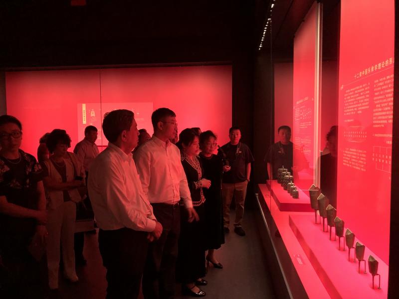 亮点三:主题背景音乐环绕、现场专题展演、配套讲解及社教活动……展览以精品文物为出发点,为观众提供立体而丰富的文化体验。从步入展厅开始,展览即通过主题背景音乐的布置,将观众带入天地同和的场域。背景音乐随着五个展览单元主题的不同而变幻,全程背景音乐环绕为观众带来沉浸式参观体验。其中,原创“天地同和”展览主题音乐,曾入选由中国唱片集团出品的2023年中宣部主题出版重点出版物《强国复兴新征程——党的二十大主题优秀原创音乐精品集》。不仅如此,展览还配套举办主题为“礼乐中原 华夏正声”专题展演活动。展览开幕当天,河南博物馆华夏古乐团现场亮相为观众演奏。展演内容包括编钟演奏、“胡腾舞”表演以及现代乐曲等。此外,展览还在国家博物馆与新疆维吾尔自治区博物馆双方讲解员、社教工作者充分业务交流的基础上,配套有讲解以及社教活动。