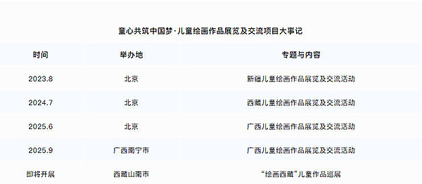 该项目自2023年启动以来,先后以“绘画新疆”“绘画西藏”“绘画广西”为专题,汇集全国各地近万名儿童参与绘画创作,对其中千余幅作品以专题展览形式展出,并邀请近百名儿童来北京参加“以画会友”交流活动,在交流互动中小画家们分享创作故事、共话美好未来。