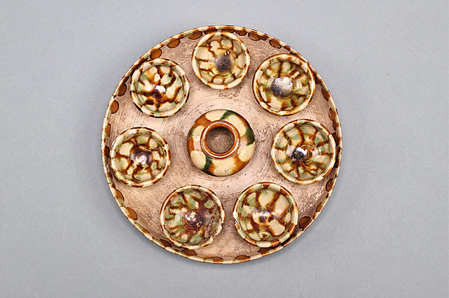 中国民族博物馆精心挑选唐代织锦以及唐三彩七星盘、唐绞胎盘、唐白釉盏托一组等精美陶瓷器参展。